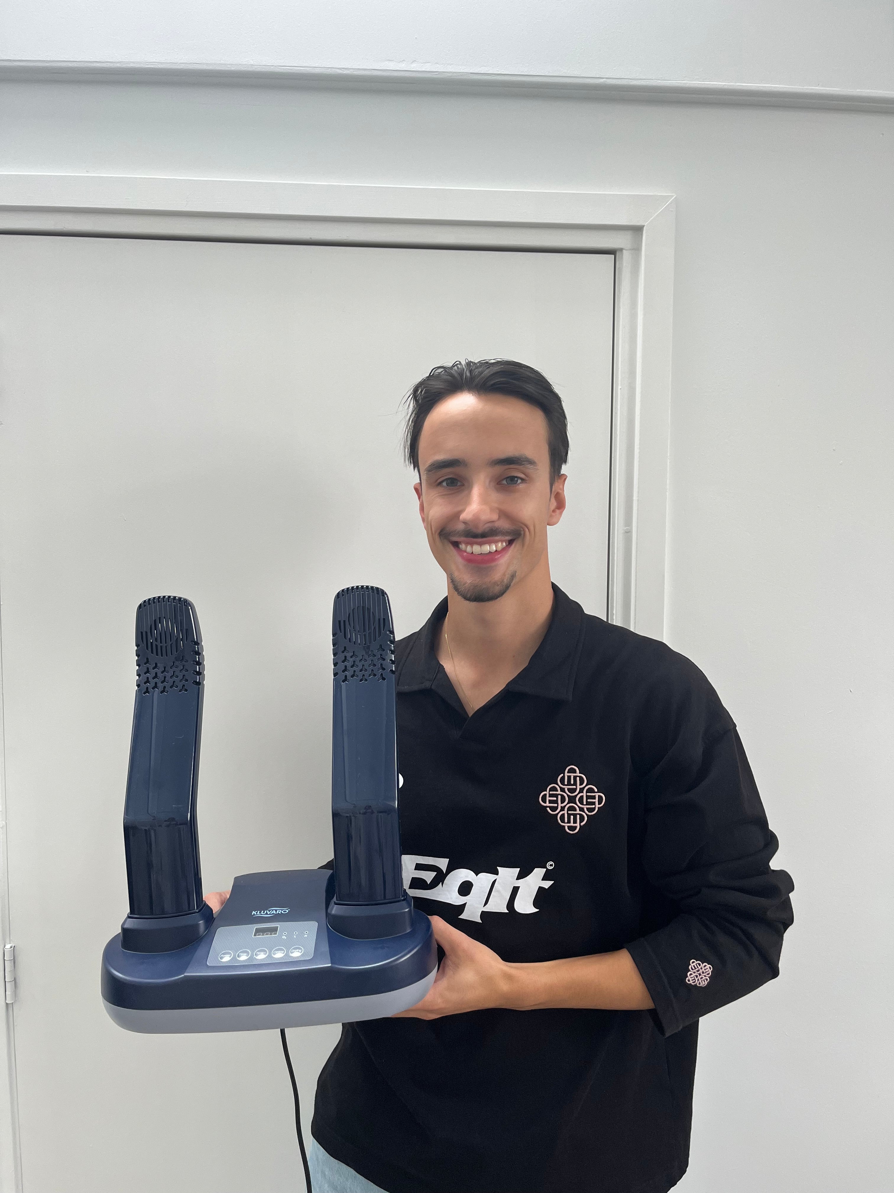 Ja, de ShoeBreeze Ozone gebruikt ozon op een veilige, gecontroleerde manier binnen het gesloten systeem van het apparaat. Het ozon wordt na de sterilisatiecyclus automatisch geneutraliseerd. Het is volledig veilig voor schoenen én je gezondheid bij normaal gebruik.
